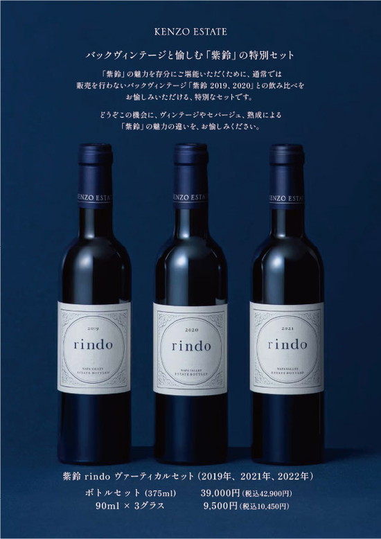 カシータ青山本店では、期間限定で バックヴィンテージ「紫鈴2019、2020」の 飲み比べをお愉しみいただける特別なセットを販売。