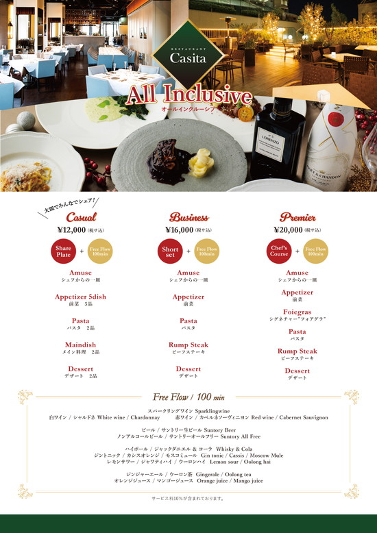 カシータ青山本店では、 年末年始から引き続き、 オールインクルーシブを実施しております!