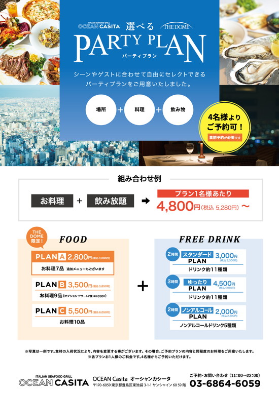 オーシャンカシータ / 池袋 TEL 03-6864-6059 オンライン予約 https://www.tablecheck.com/ja/shops/casita-ocean/reserve