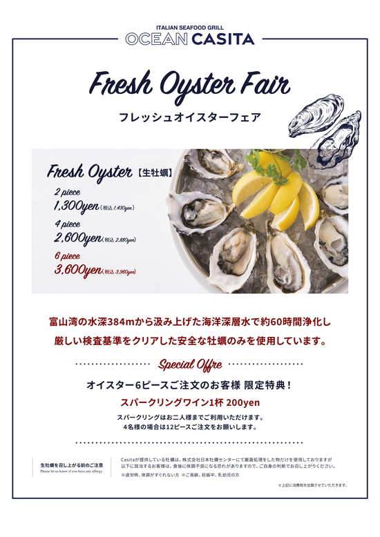 オーシャンカシータの期間限定『フレッシュオイスターフェア』をアップしました。