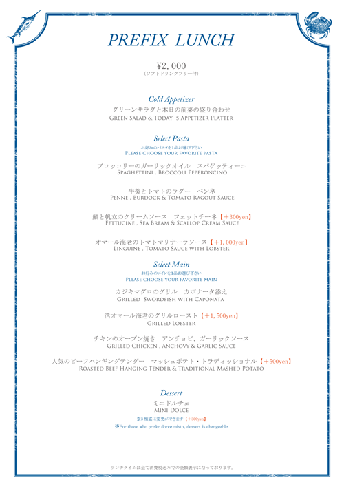※ランチメニューは、平日のみのメニューです。(土・日・祝日は